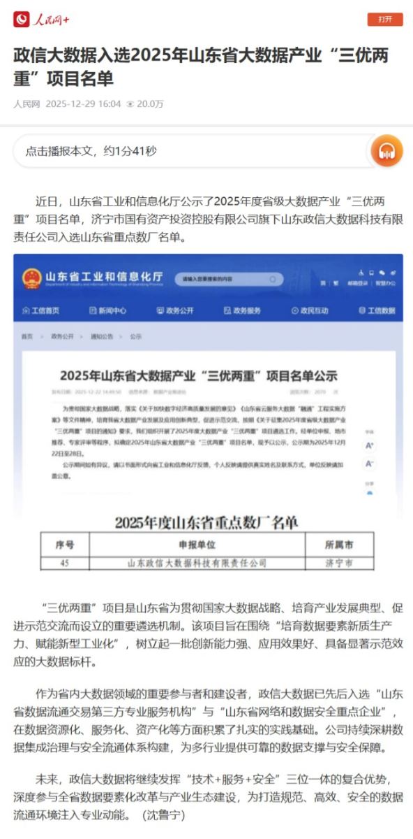 原鏈接:政信大數(shù)據(jù)入選2025年山東省大數(shù)據(jù)產(chǎn)業(yè)“三優(yōu)兩重”項目名單